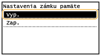 Ak chcete tlačiť prijaté dokumenty v pamäti, nastavte voľbu <Nastavenia zámku pamäte> na <Vyp.>. Vytlačia sa všetky dokumenty v pamäti.
