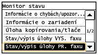 Ťuknite na <Stav/výpis úlohy PR. faxu>.