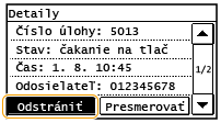 Môžete skontrolovať podrobné informácie o dokumentoch uložených v pamäti vrátane faxových čísel odosielateľa a počtu odoslaných strán a potom môžete vymazať nepotrebné dokumenty.