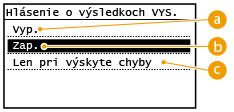 Vyberte, ak chcete tlačiť hlásenie o výsledku VYS. iba pri výskyte chyby príjmu.