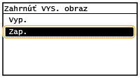 Keď vyberiete voľbu <Zap.> alebo <Len pri výskyte chyby>, hlásenie môže obsahovať časť faxového dokumentu. Ťuknutím nastavte možnosť <Zahrnúť VYS. obraz> na <Zap.>.