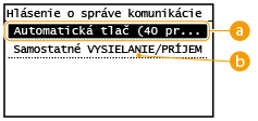 Vyberte voľbu <Zap.>, ak chcete automaticky tlačiť hlásenie po 40 prenosoch, alebo vyberte voľbu <Vyp.>, ak nechcete automaticky tlačiť hlásenie.