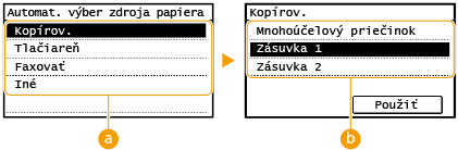 ). Automatický výber zásuvky sa vždy aktivuje pre tlač na papier podávaný z mnohoúčelového priečinka.