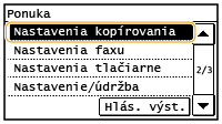Všetky nastavenia kopírovania sú uvedené s krátkymi opismi. Predvolené nastavenia sú označené krížikom (