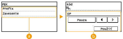 Vyberte možnosť <Prefix> alebo <Zavesenie>