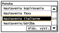 Všetky nastavenia tlačiarne sú uvedené s krátkymi opismi. Predvolené nastavenia sú označené krížikom (  ).