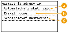 Skontrolujte, či je voľba <Automatická adresa IP> nastavená na <Zap.>.