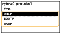 Ťuknite na <DHCP>, <BOOTP> alebo <RARP>.