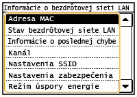 <Informácie o bezdrôtovej sieti LAN> a vyberte nastavenie, ktoré chcete zobraziť.
