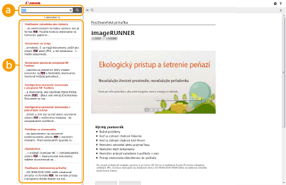 Kliknite na zobrazenie informácií o tom, ako zobraziť elektronickú príručku, ako vykonať vyhľadávanie a iné informácie.
