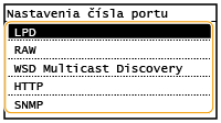 Porty slúžia ako koncové body na komunikáciu s inými zariadeniami. Pre hlavné protokoly sa typicky používajú konvenčné čísla portov, ale zariadenia, ktoré používajú tieto čísla portov, sú zraniteľné, pretože tieto čísla portov sú dobre známe. Na vylepšenie zabezpečenia môže váš správca siete zmeniť čísla portov. Keď sa zmení číslo portu, komunikačné zariadenia, ako sú počítače a servery, musia zdieľať nové číslo. Špecifikujte nastavenia čísla portu v závislosti od sieťového prostredia.