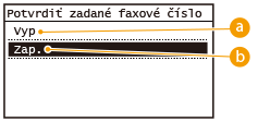 Zobrazí okno na potvrdenie faxového čísla.