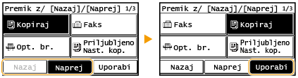 Tapnite <Nazaj> ali <Naprej>, da premaknete gumb, nato pa tapnite <Uporabi>.