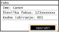 Podrobne nastavitve za prejemnike lahko nastavite tudi v razdelku <Meni>  <Nastavitve faksa>. Vendar pa so nastavitve, nastavljene v razdelku <Imenik>, omogočene za podrobno nastavitev prejemnikov, registriranih v imeniku.