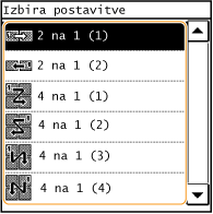 , vendar robovi dokumenta morda ne bodo kopirani, če razmerje povečate.Možnost <2 na 1>/<4 na 1> ni na voljo pri uporabi funkcij <Brisanje okvirja>, <Izvirniki različne velikosti>, <Knjiga