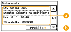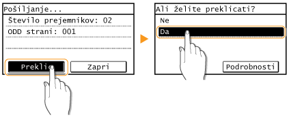 Za preklic pošiljanja pritisnite tipko <Preklic>