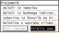 / in preklapljate med izbranimi prejemniki. Izberite prejemnika, ki ga želite izbrisati, in pritisnite . |