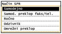 Stroj lahko nastavite tako, da samodejno sprejme fakse, ko dohodni klic zvoni določen čas. Preklop v samodejni način SPR