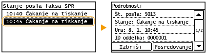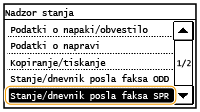Tapnite <Stanje/dnevnik posla faksa SPR>.