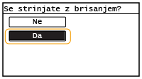 Registrira geslo, ki vsebuje največ sedem števk. Geslo registrirate tako, da ga vnesete s številskimi tipkami in nato tapnete <Uporabi>. Znova vnesite iste številke za potrditev in tapnite <Uporabi>. To geslo boste morali vnesti, ko spreminjate nastavitve sprejema v pomnilnik ali ko izklopite funkcijo sprejema v pomnilnik, če želite natisniti vse shranjene dokumente. Če gesla ne želite registrirati, pustite polje prazno in tapnite <Uporabi>.