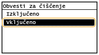 Če želite, da se prikaže sporočilo, ko je na območju optičnega branja zaznana umazanija, možnost <Obvesti za čiščenje> nastavite na <Vključeno>.
