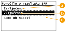 Izberite, če ne želite natisniti Poročila o rezultatu SPR.