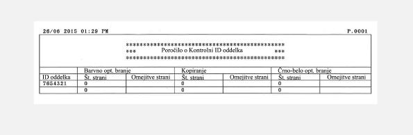 Ko je omogočeno upravljanje ID-jev oddelka, lahko za vsak ID oddelka natisnete poročilo o skupnem številu kopiranih, natisnjenih in optično prebranih strani. Poročilo omogoča nadzor uporabe in izboljšanje uporabe stroja.