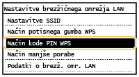 Če brezžični usmerjevalnik podpira način WPS s kodo PIN, v napravi ustvarite kodo PIN in jo registrirajte v omrežno napravo.