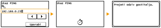 Preverjanje pravilnosti nastavitevPreverite, ali lahko prek računalnika odprete zaslon Remote UI (oddaljeni uporabniški vmesnik (Zagon vmesnika Remote UI (Oddaljeni uporabniški vmesnik)). Če računalnik ni na voljo, lahko povezavo preverite na upravljalni plošči (Preskušanje omrežne povezave).