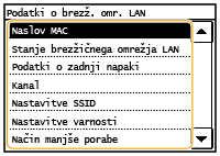 <Podatki o brezžičnem omrežju LAN> in izberite nastavitev, ki si jo želite ogledati.