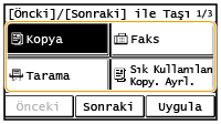 Düğmeyi taşımak için <Önceki> veya <Sonraki> öğesine dokunun ve <Uygula> öğesine dokunun.