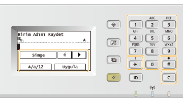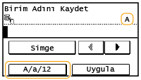 Girilen metnin türü <A> veya <a> ise ekranda girilebilir sembolleri görüntülemek için