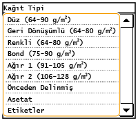Ayar, yüklenen kağıdın boyutu ve türüyle eşleşmezse, kağıt sıkışması veya yazdırma hatası oluşabilir.