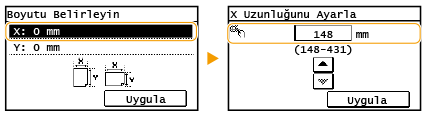 / öğesini kullanarak <X: "> tarafının uzunluğunu girin, / öğesi ile imleci haneler arasında gezdirerek tam sayıları ve kesirleri girin ve <Uygula> öğesine dokunun.![]() |