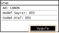 Sayı tuşlarını kullanarak adı girin ve <Uygula> öğesine dokunun.
