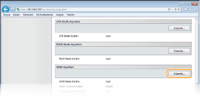 WSD aracılığıyla bir bilgisayardan makine hakkında bilgi almak için onay kutusunu seçin. [WSD Baskı Kullan] onay kutusu seçildiğinde bu onay kutusu otomatik olarak seçilir. [WSD Tarama Kullan]