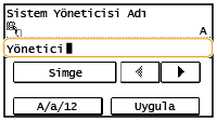 Sistem Yöneticisi Adı için en fazla 32 karakter girin ve <Uygula> öğesine dokunun. Metin Girme