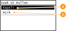 <Uzak Kullanıcı Arabirimi Ayarları>