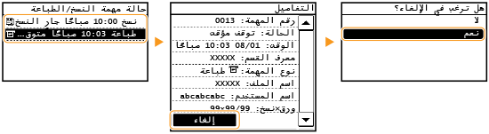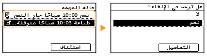حدد المستند على الشاشة <حالة مهمة النسخ/الطباعة>