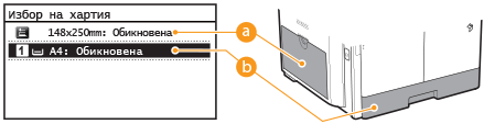 Първо, трябва да зададете размер и тип на хартията, заредена в източника на хартия.