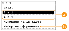 2 страници> или <Копиране на ID карта>.Когато копирате множество документи върху една страница, в копираното изображение може да бъдат създадени бели полета.