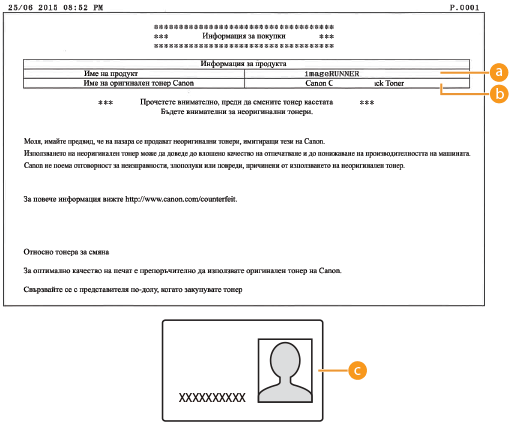 Име на оригиналния тонер на Canon