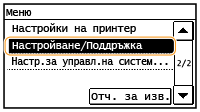 Всички опции за настройване и поддръжка са поместени с кратки описания в списъка. Настройките по подразбиране са отбелязани с кръстче (