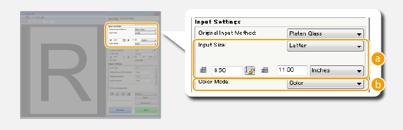 Настройката на бутона /b_S136.gif) (запазване на съотношението ширина/височина) в [Input Settings] (Настройки за вход)