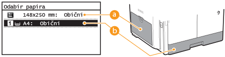 Najprije morate navesti veličinu i vrstu papira koji je umetnut u izvor papira.