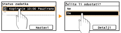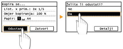 Dodirnite <Odustani> na zaslonu koji se prikazuje za vrijeme kopiranja