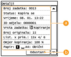 Prikazan je broj kopija, postavke i ostale pojedinosti. Ako želite samo provjeriti pojedinosti bez otkazivanja kopiranja, pritisnite