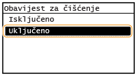 Za prikaz poruke kad se u području skeniranja otkrije prljavština, postavite <Obavijest za čišćenje> na <Uključeno>.