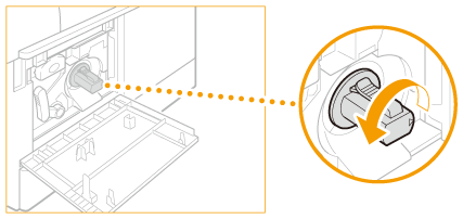 ) okrenite spremnik tonera u smjeru strelice (udesno).
