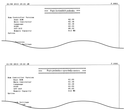 Popis korisničkih podataka ne uključuje informacije o postavkama za <Postavke upravljanja sustavom>. Za provjeru svih podešenih stavaka ispišite popis Popis podataka upravitelja sustava.